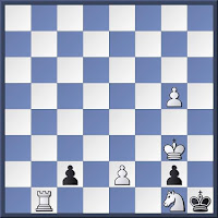 b) 2... Kg5 3. Rxf5+ Kxf5 4. Nd6+ Kg5 5. Ne4+ Kf5 6. Rc7! 6. Bd1? Kxe4 7. Bxg4 Qd2+ 8. Kxh3 Qc1! 9. Rb4+ Ke3 10. Bf5 Nd7 11. Rb1 Qc8 12. Rb8 Qxb8 13. Bxd7 Qh8 = 6... Qxc7 6... Nc6 7. Rxc6 Qxc6 8. e8=Q! Qxe8 9. Nd6+ +- 7. e8=N! 7. e8=Q? Kxe4 8. Qg8 Qd7 9. Qg5 Nc6 10. Bc2+ Kd5 11. Bf5 Nd4 = 7... Qc1 8. N8d6#